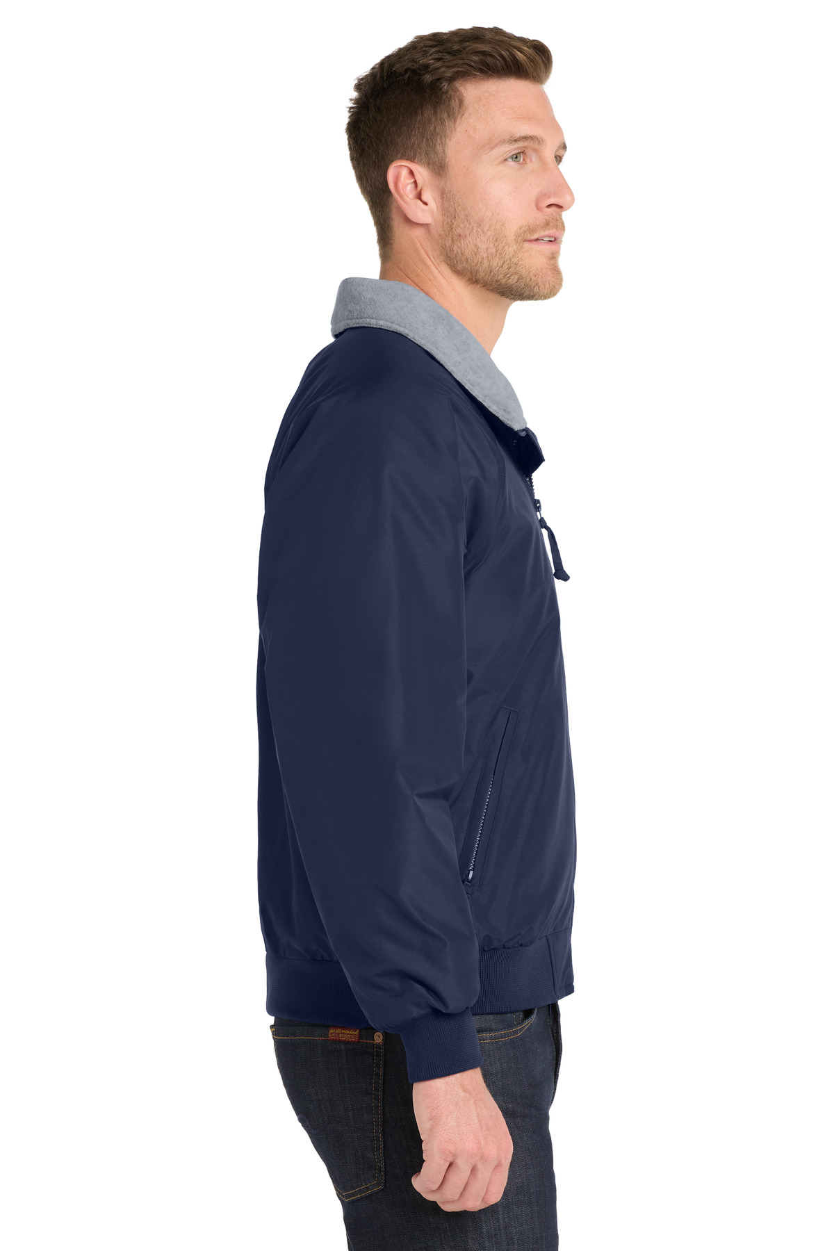 - Rib knit cuffs and waistband