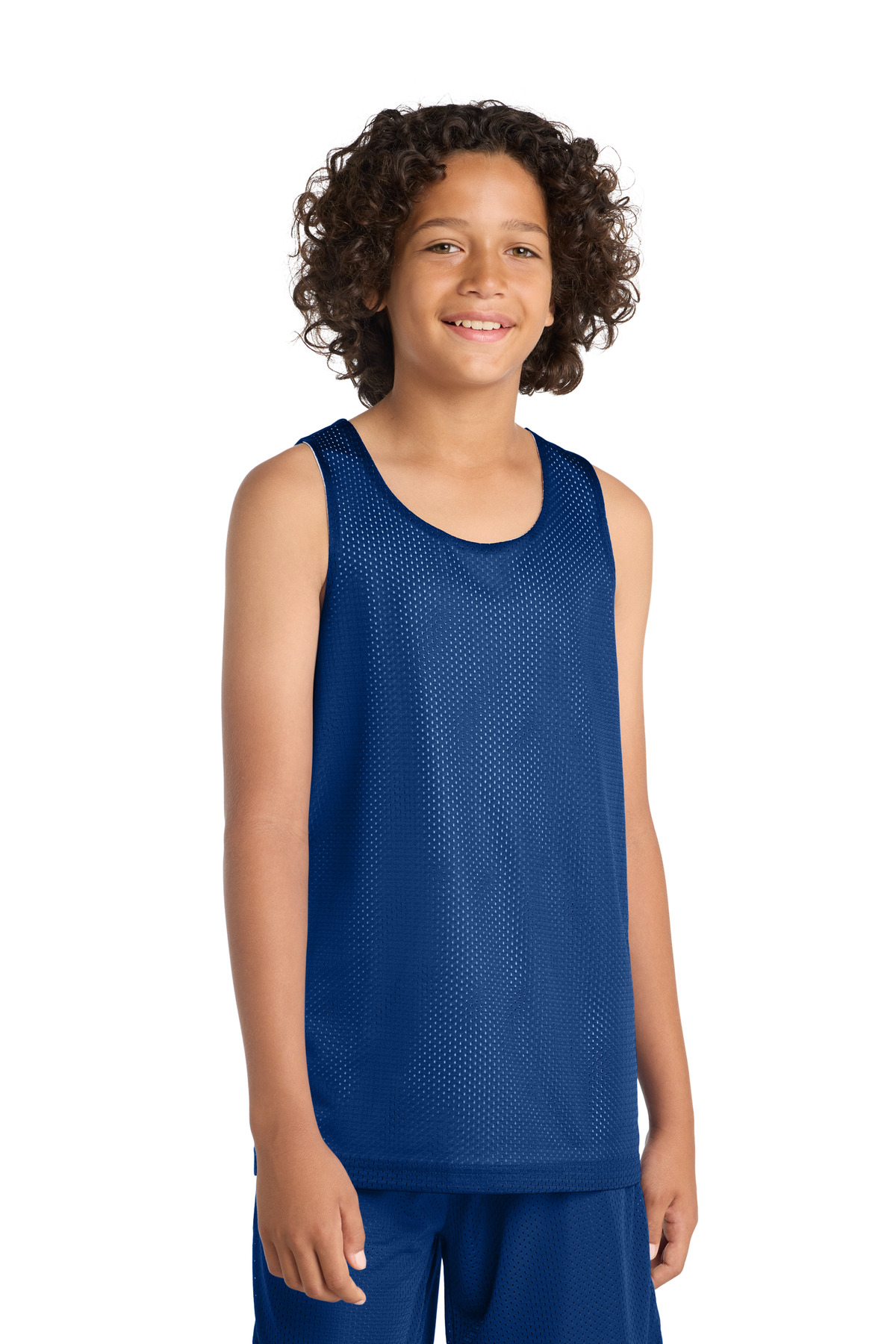 A moisture-wicking, breathable tank with open-hole mesh for a classic look and PosiCharge technology for improved color-fastness.